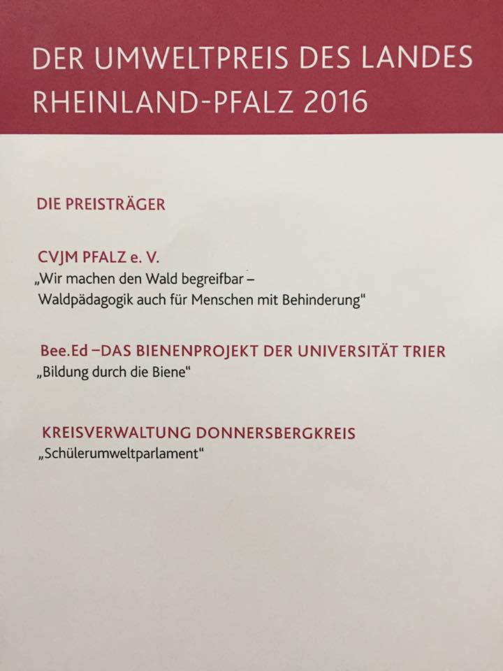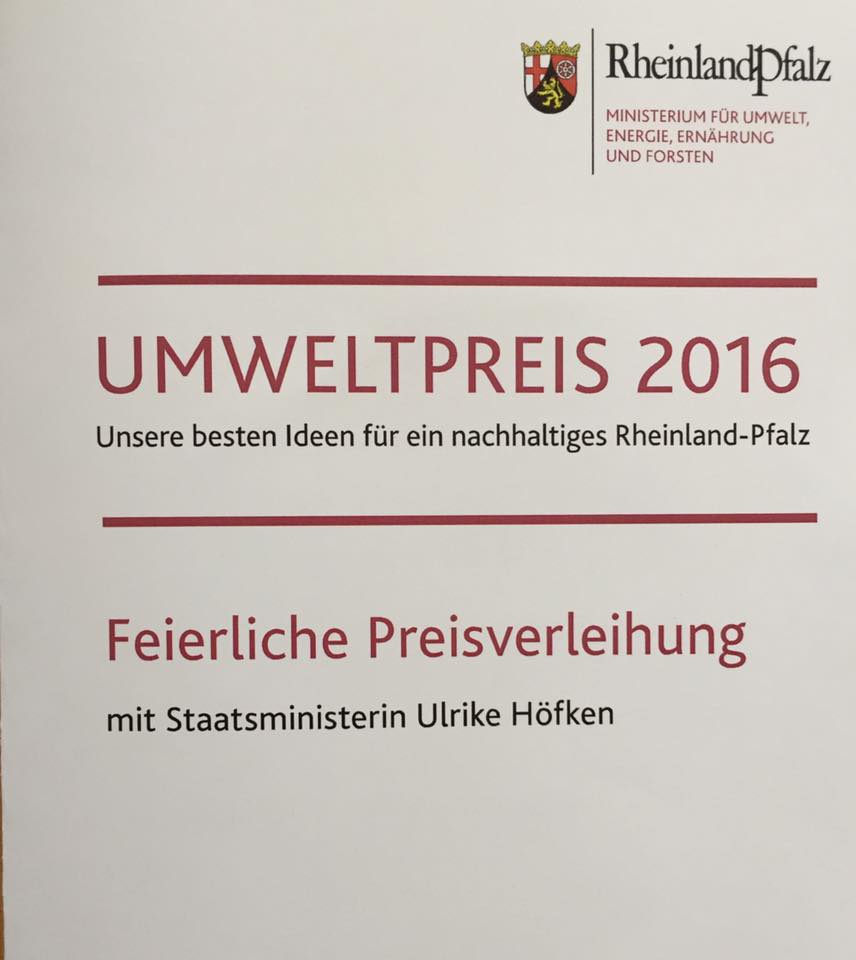 Feierliche Preisverleihung des Umweltpreises des Landes Rheinland-Pfalz 2016 durch Staatsministerin Ulrike Höfken.
